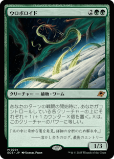 《天才遺伝学者、ジャッカル》《ウロボロイド》という強力なラインで攻める青緑カラーのビートダウンは、時にコンボデッキのような速度で展開しながら殴り切ります。
