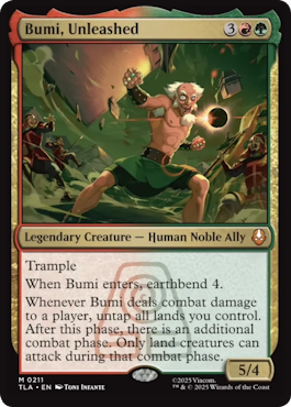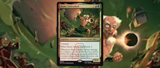 『アバター 伝説の少年アン』新カード情報:戦場に出た時に土の技を行い、土地だけが追加で戦闘できる人間など