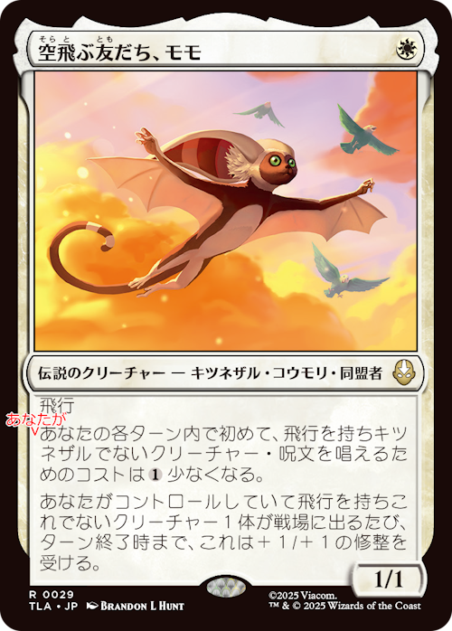 正)あなたがあなたの各ターン内で初めて、飛行を持ちキツネザルでないクリーチャー・呪文を唱えるためのコストは{1}少なくなる。