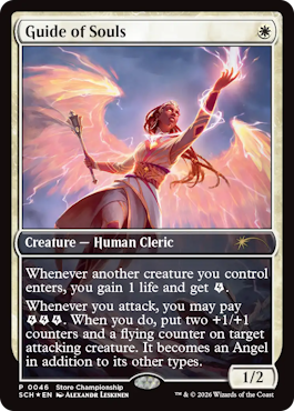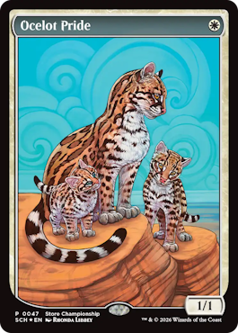 ストアチャンピオンシップのプロモ《ゴブリンの砲撃》《魂の導き手》《オセロットの群れ》が公開 投稿日: 2026年1月7日 投稿者:ゆうやん@管理人 カテゴリー:ニュース, プロモ // 4 Comments 1月7日、マジック公式サイトより、ストアチャンピオンシップのプロモカードが公開されました。 概要 開催日は2月6日から2月22日まで。 参加プロモは《ゴブリンの砲撃》が進呈。 トップ8プロモは《魂の導き手》が進呈。 優勝者には《オセロットの群れ》が進呈。 ソース Where to Play Lorwyn Eclipsed スポンサーリンク 関連記事 2026年のプロツアーおよび世界選手権で配られるプロモ版の《知りたがりの学徒、タミヨウ》が公開 1月7日、マジック公式サイトより、2026年のプロツアーおよび世界選手権のプロモカードが公開されました。 概要 2026年のプロツアーと ... 巳年プロモの《水蓮のコブラ》《桜族の長老》《大蛇の大魔導師、かせ斗》《森》が2026年のマジックリーグで配布決定 12月26日、マジック公式サイトより、2026年のマジックリーグで配布される「巳年プロモ」に関する案内がありました。 概要 2025年4 ... モンスターハンターとのコラボSecret Lairが発売延期に。ユーザーからの声を受け内容をリニューアルすることに 先日発表されたモンハンとのコラボ製品、Secret Lair x Monster Hunterの発売延期が発表されました。 概要 今回発 ... ベーシック・ブースター3パック購入ごとにFFキャラのプラスチック製トークンがもらえるキャンペーンが実施 12月5日、『マジック:ザ・ギャザリング——FINAL FANTASY』ベーシック・ブースター』発売に合わせて実施される「マジックはじめよう ... 来年2月のスポットライトシリーズにて配布されるテキストレスの《ヴェンディリオン三人衆》が公開 11月26日、マジック公式サイトより、新たなプロモカードが公開されました。 概要 2026年2月6日~8日にカナダのトロントで行われるス ...