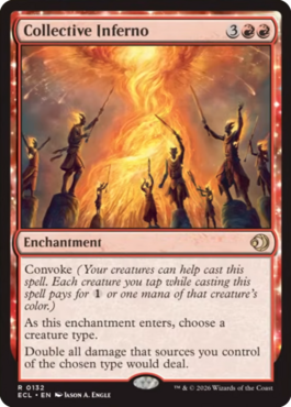 あなたがコントロールしている選ばれたタイプの発生源が与えるすべてのダメージは2倍になる。 |