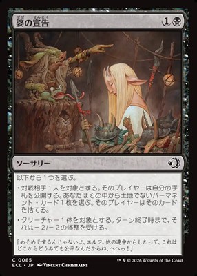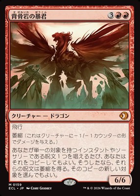『ローウィンの昏明』新カード情報:単一の対象を持つインスタント・ソーサリーが委縮を得てコピーされるドラゴンなど 投稿日: 2026年1月9日 投稿者:ゆうやん@管理人 カテゴリー:新カード情報 // 10 Comments 1月9日、マジック公式サイトより、1月23日発売の最新通常セット『ローウィンの昏明』に収録されるカードの情報が公開されました。 公開カード ソース 公式カードイメージギャラリー スポンサーリンク 関連記事 『ローウィンの昏明』新カード情報:攻撃時に攻撃している数以下のマナ総量の生物を手札から出す2マナ2/2など 1月9日、各種情報ソースより、1月23日発売の最新通常セット『ローウィンの昏明』に収録されるカードの情報が公開されました。 公開カード ... 『ローウィンの昏明』新カード情報:クリーチャー死亡時にカウンターの乗った数だけトップを追放してプレイできるアウフなど 1月9日、各種情報ソースより、1月23日発売の最新通常セット『ローウィンの昏明』に収録されるカードの情報が公開されました。 公開カード ... 『ローウィンの昏明』新カード情報:シグ・ブリジッドの命令に両面のブリジッド、2マナ4/5の馬など 1月8日、マジック公式サイトより、1月23日発売の最新通常セット『ローウィンの昏明』に収録されるカードの情報が公開されました。 公開カード ... 『ローウィンの昏明』新カード情報:エレメンタル以外の全クリーチャーを手札に戻す、エレメンタルのコスト分軽くなるエレメンタル 1月8日、マジック公式サイトより、1月23日発売の最新通常セット『ローウィンの昏明』に収録されるカードの情報が公開されました。 公開カード ... 『ローウィンの昏明』新カード情報:新アジャニや2マナ6/6のキスキン、新ドランなどが公開 1月7日、マジック公式サイトより、1月23日発売の最新通常セット『ローウィンの昏明』に収録されるカードの情報が公開されました。 公開カード ...