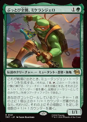 『ミュータント タートルズ』新カード情報:ミケランジェロやウシなど緑のレア・神話レアが公開 投稿日: 2026年1月22日 投稿者:ゆうやん@管理人 カテゴリー:新カード情報 // 0 Comments 1月22日、マジック公式サイトより、『ミュータント タートルズ』のカードが大量に公開されました。 概要 『ローウィンの昏明』のプレリリースキットに『ミュータント タートルズ』のカードが混入していたことを受けて、公式サイトより、『ミュータント タートルズ』のレア・神話レアがすべて公開されました。 ※数が多いので各色ごとに記事を分けています。 公開カード ソース 公式カードイメージギャラリー スポンサーリンク 関連記事 『ミュータント タートルズ』新カード情報:クランゲやノーサンプトン農場など無色・土地のレア・神話レアが公開 1月22日、マジック公式サイトより、『ミュータント タートルズ』のカードが大量に公開されました。 概要 『ローウィンの昏明』のプレリリー ... 『ミュータント タートルズ』新カード情報:ラファエロなど赤のレア・神話レアが公開 1月22日、マジック公式サイトより、『ミュータント タートルズ』のカードが大量に公開されました。 概要 『ローウィンの昏明』のプレリリー ... 『ミュータント タートルズ』新カード情報:シュレッダーやラットキングなど黒のレア・神話レアが公開 1月22日、マジック公式サイトより、『ミュータント タートルズ』のカードが大量に公開されました。 概要 『ローウィンの昏明』のプレリリー ... 『ミュータント タートルズ』新カード情報:ドナテロなど青のレア・神話レアが公開 1月22日、マジック公式サイトより、『ミュータント タートルズ』のカードが大量に公開されました。 概要 『ローウィンの昏明』のプレリリー ... 『ミュータント タートルズ』新カード情報:レオナルドなど白のレア・神話レアが公開 1月22日、マジック公式サイトより、『ミュータント タートルズ』のカードが大量に公開されました。 概要 『ローウィンの昏明』のプレリリー ...