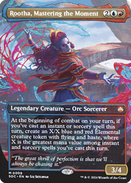 あなたのターンの戦闘開始時に、このターンにあなたがインスタントかソーサリーである呪文を唱えていたなら、飛行と速攻を持つ青赤のX/Xのエレメンタル・クリーチャー・トークン1体を生成する。Xはこのターンにあなたが唱えたインスタントやソーサリーである呪文の最大のマナ総量である。