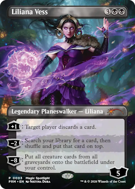 5月に行われるスポットライトシリーズのプロモ《リリアナ・ヴェス》が公開。うち1つは日本の千葉で開催 投稿日: 2026年3月11日 投稿者:ゆうやん@管理人 カテゴリー:ニュース, プロモ // 0 Comments 3月11日、マジック公式サイトより、5月に行われるスポットライトシリーズのプロモカードが公開されました。 概要 5月8日~10日に行われるロンドン 5月29日~31日に行われる千葉 この2つのスポットライトシリーズのプロモカード《リリアナ・ヴェス》が公開されました。 ソース Prepare for Magic Spotlight: Secrets in London and Chiba スポンサーリンク 関連記事 統率者戦を満喫できる祭典、コマンドフェストが夏に日本で2回開催!7月は大阪、8月は横浜 3月11日、マジック公式サイトより、統率者を楽しめるイベント、コマンドフェストの開催およびプロモカードが公開されました。 概要 コマンド ... 本日20時よりミュータントタートルズ発売を記念した統率者戦の動画が公開!ピザ・コマンダーで火花を散らす! 3月6日20時より、マジック:ザ・ギャザリング日本公式Youtubeチャンネルにて、統率者戦の動画が公開されます。 概要 本動画は、『ミ ... 本日から4月16日のスタンダードショーダウンのプロモカードは《稲妻》! 3月6日よりスタンダードショーダウンは新シーズンに突入。ミュータントタートルズのプロモになりました。 概要 3月6日から4月16日までの ... カイ・ブッディ選手を偲ぶ公式記事まとめ 2026年1月19日に逝去したプロプレイヤー、カイ・ブッディ選手を偲ぶ記事をまとめました。 概要 不滅のジャガーノート:カイ・ブッディへ ... 『マジック:ザ・ギャザリング——FINAL FANTASY』統率者デッキの追加生産分が3月下旬~4月下旬頃に マジック公式サイトより、『マジック:ザ・ギャザリング——FINAL FANTASY』統率者デッキの追加生産に関する発表がありました。 概要 ...