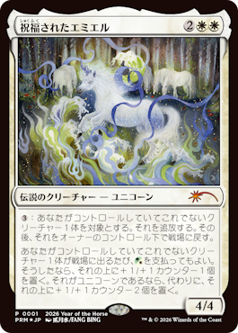 2026年3月30日、マジック公式サイトより、マジックリーグで配布される午年プロモの《祝福されたエミエル》が公開されました。