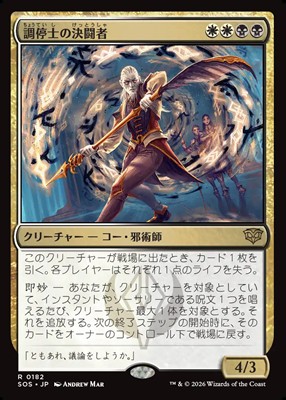 《調停士の決闘者》の場合、即妙でクリーチャーをちらつかせます。