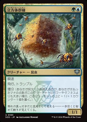 たとえば2マナ以上の呪文を唱えた場合、《立法的群棲》は+1/+1カウンターが乗ります。