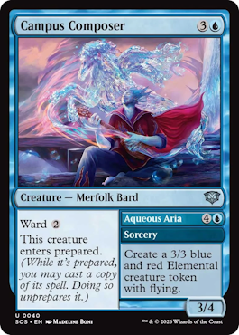 護法 3/4 《Aqueous Aria》(4)(青) 飛行を持つ青赤のエレメンタル。クリーチャー・トークン1体を生成する。 |