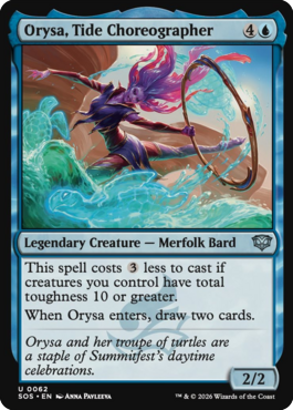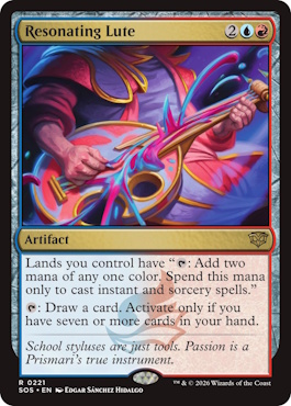 演目 – あなたがインスタントやソーサリーである呪文1つを唱えるたび、カードを1枚引き、その後、その呪文を唱えるために5点以上のマナが支払われていない限り、カード1枚を捨てる。 1/2 |
