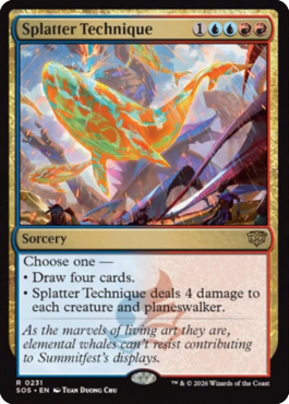 ・Splatter Techniqueは各クリーチャーと各プレインズウォーカーに4点のダメージを与える。 |