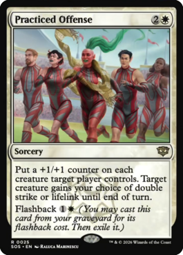 プレイヤー1人を対象とし、クリーチャー1体を対象とする。その前者がコントロールしている各クリーチャーの上に+1/+1カウンターをそれぞれ1個ずつ置く。その後者は、ターン終了時まで二段攻撃と絆魂のうちあなたが選んだ一方を得る。 |