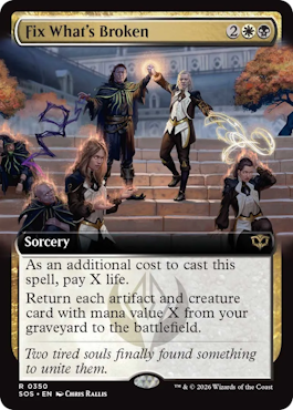 あなたの墓地にある、マナ総量がX以下であるアーティファクトやクリーチャーである各カードを戦場に戻す。 |